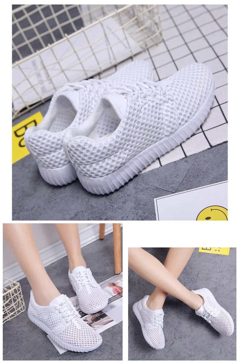 2020 Hot sell Summer Outdoor Women Sneakers Casual White Women Shoes Breathable Ultralight Cutout Solid Kintting zapatos mujer