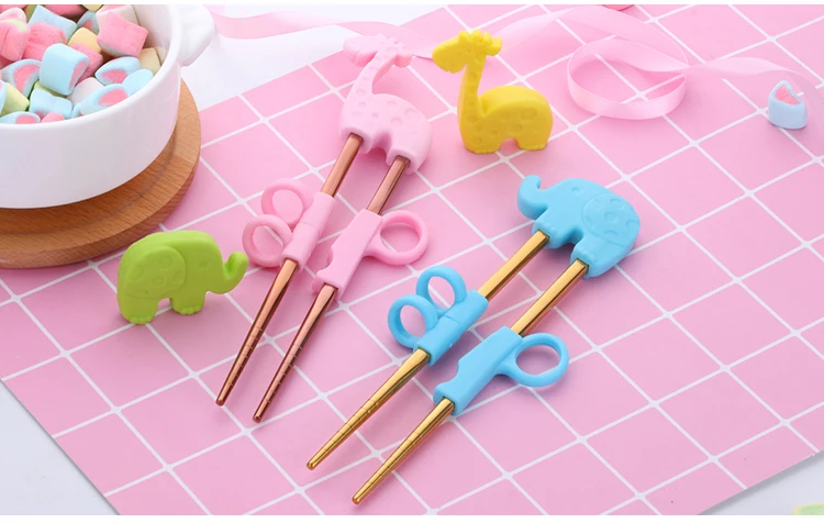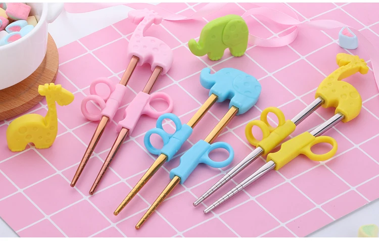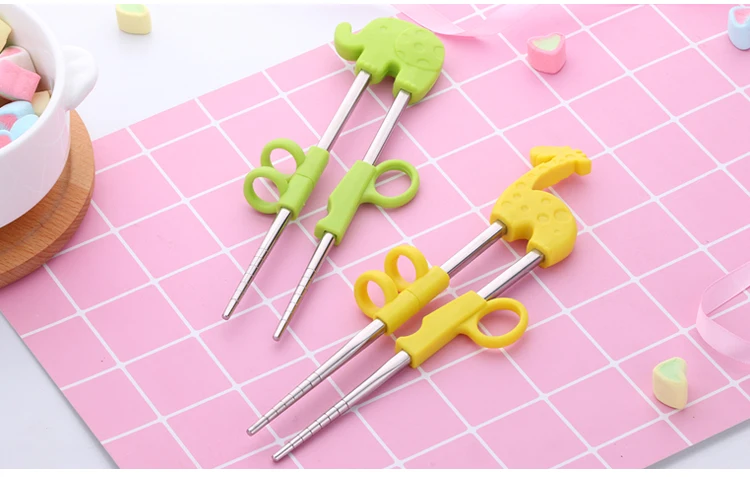 2Pairs Children Chopsticks For Kids Baby Staniless Steel Cartoon Learning Reusable Training Helper Chopsticks Home Baby Products