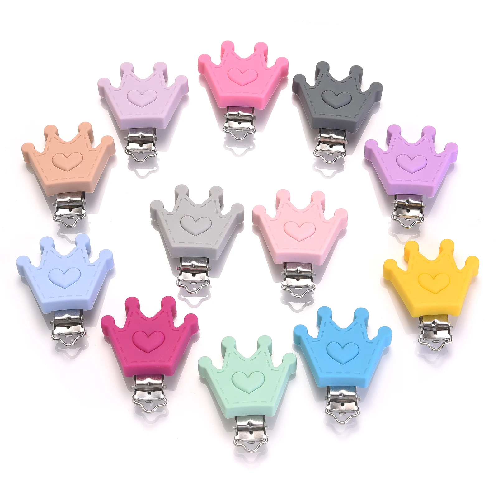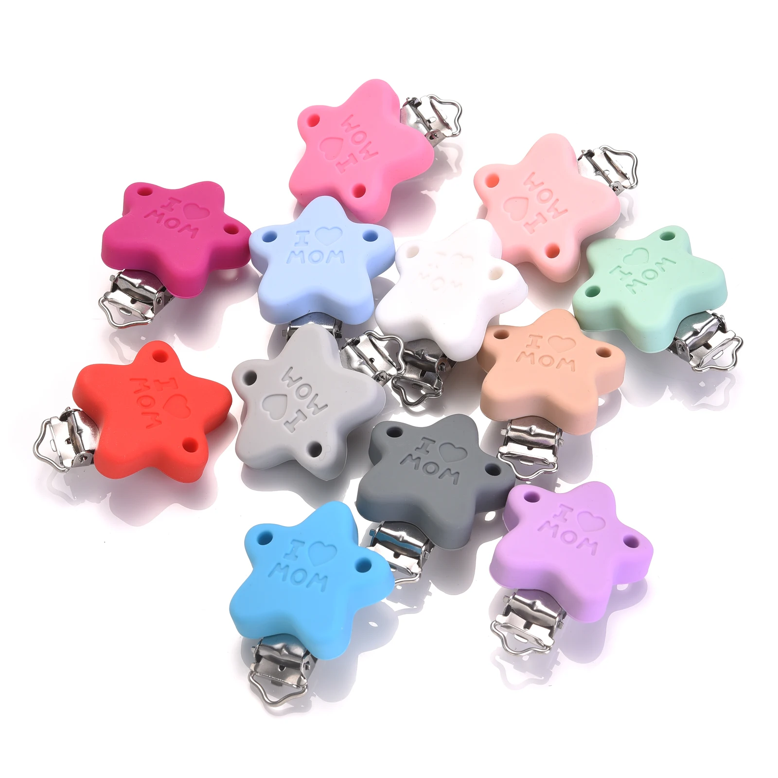 3Pcs Silicone Clips Pentagram Crown Heart Shape Teether Pacifier Clips DIY Baby Dummy Holder Chain Care Teething Beads Tool Gift