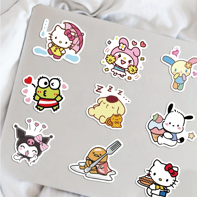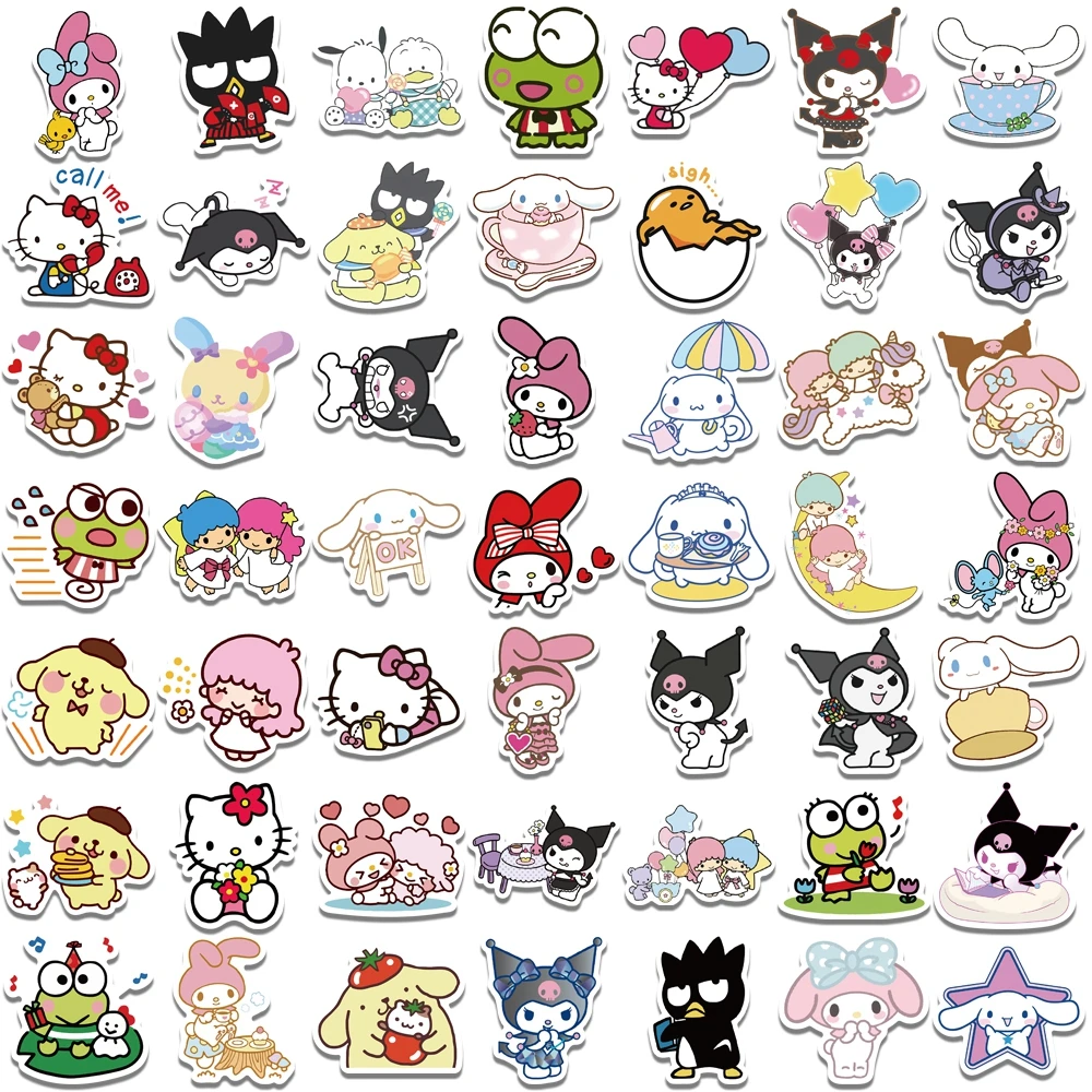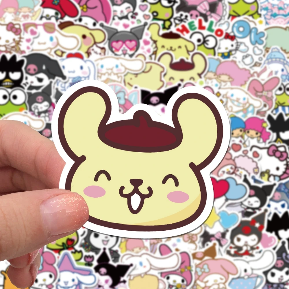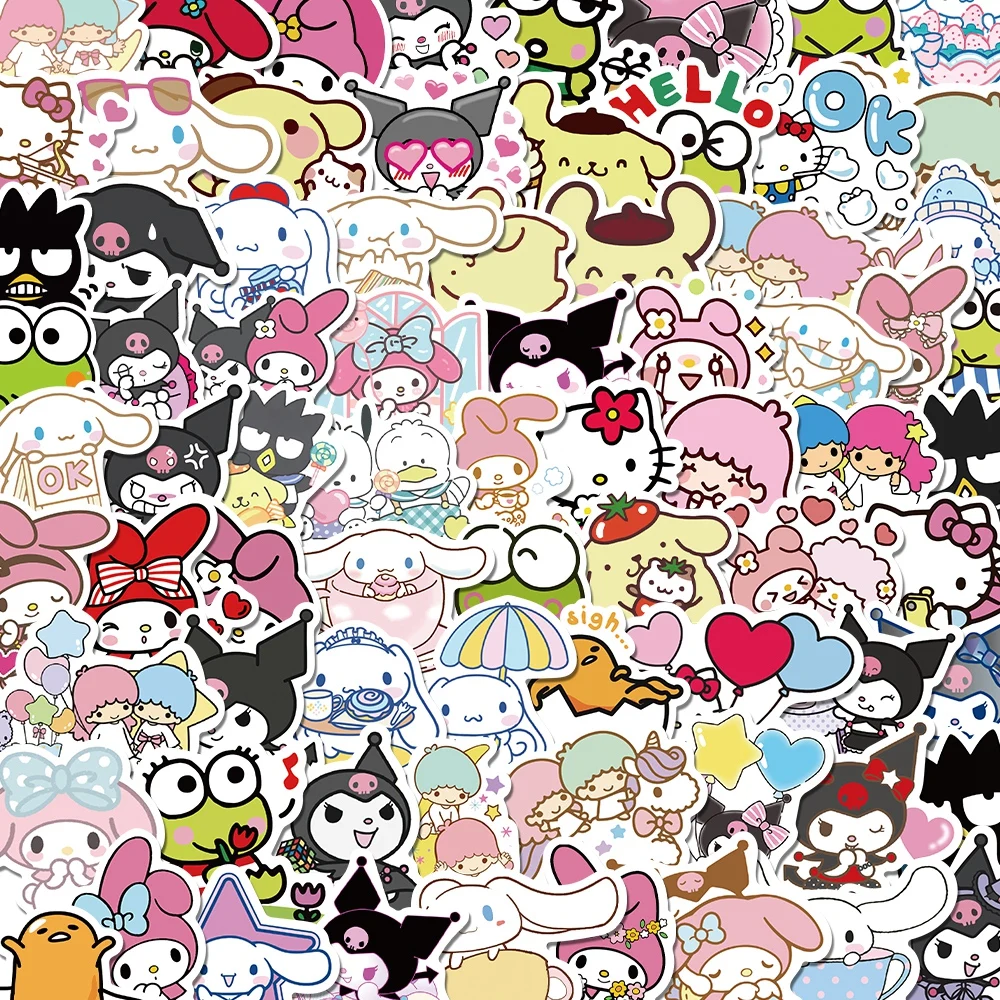 50/100pcs Mixed Cartoon Sanrio Stickers Cute Hello Kitty Cinnamoroll Kuromi My Melody Waterproof Sticker Decals for Kids Toys