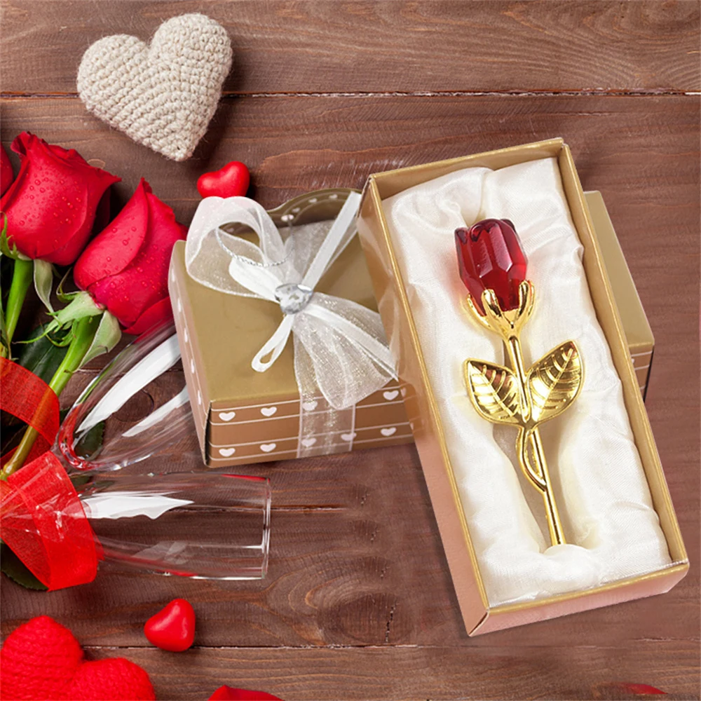Best Gifts for Girlfriend Valentines Gift Mini Crystal Artificial Flower Crystal Rose with Metal Branch Wedding Party Favors