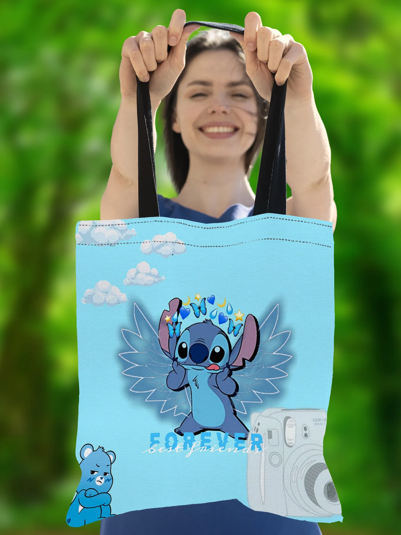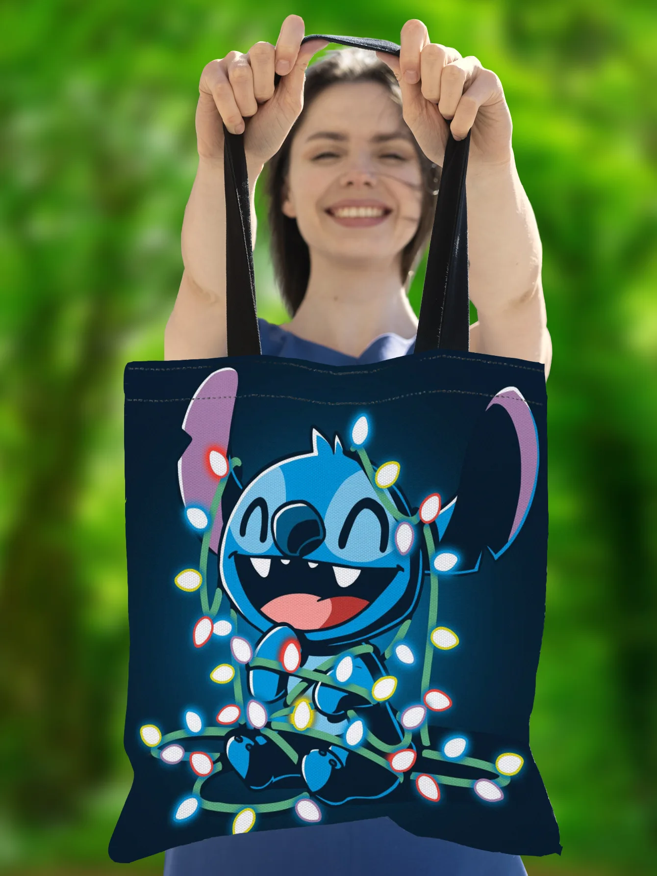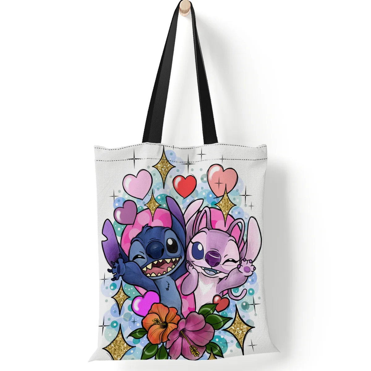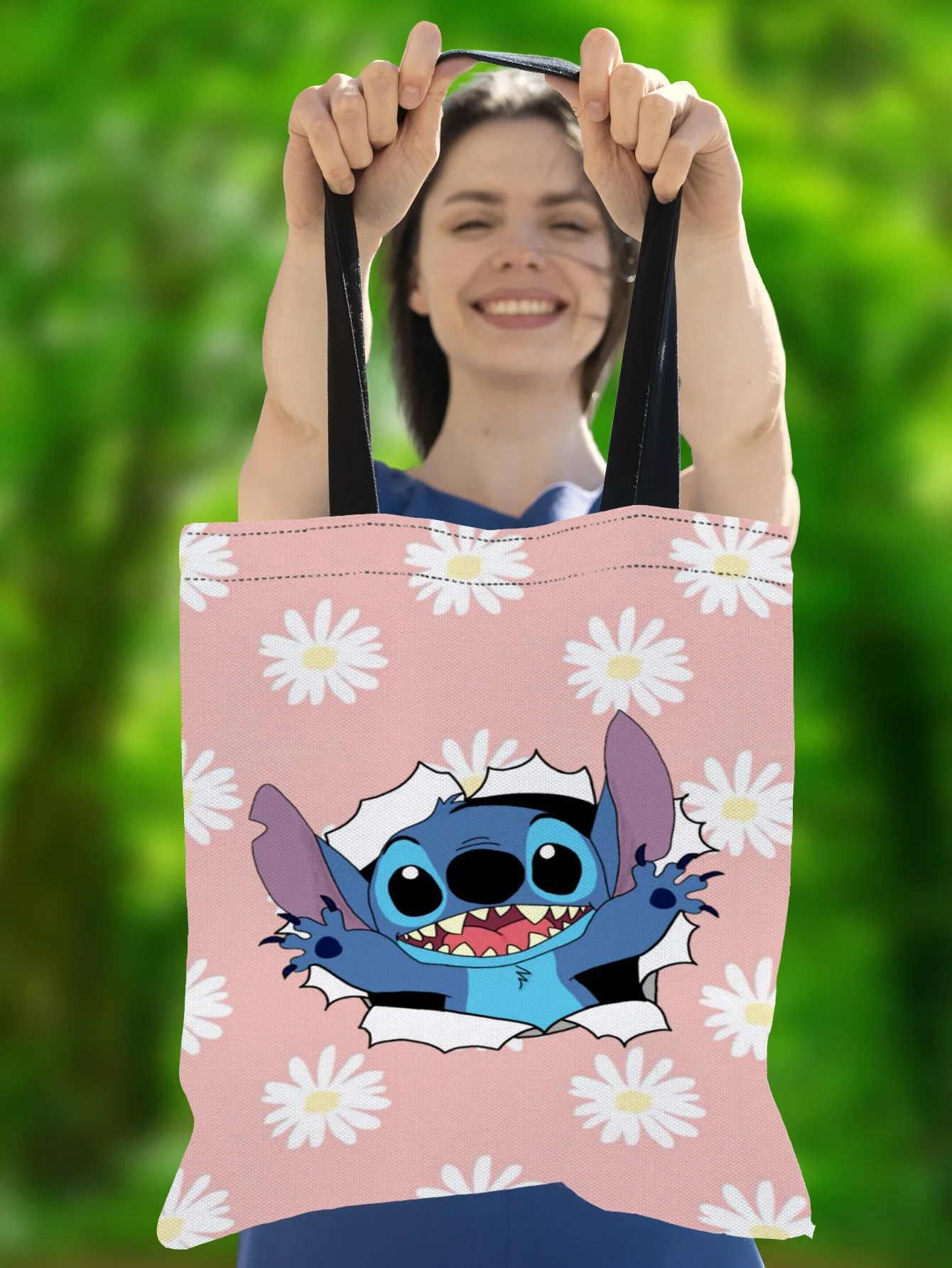 Disney Anime Figure Stitch Tote Bags for Women Canvas Handbags Large Capacity Shopping Bags Lilo & Stitch Girls Gifts 35x40cm
