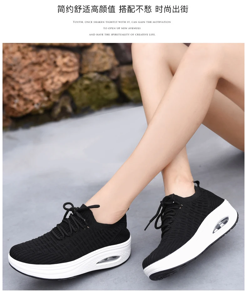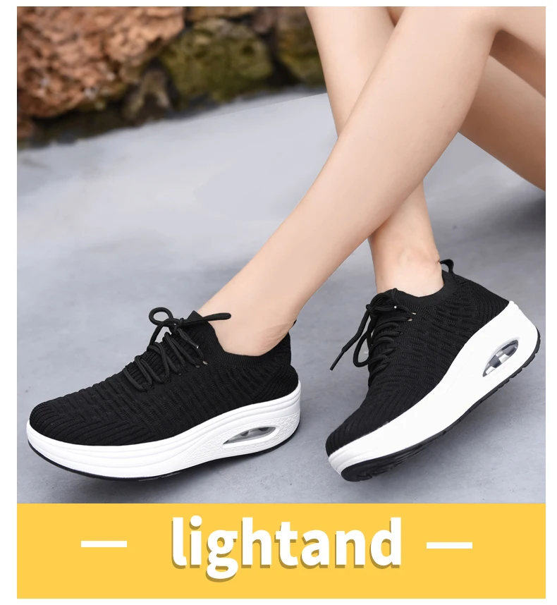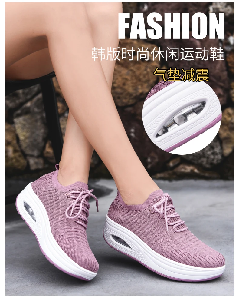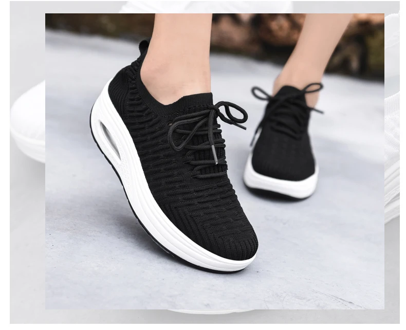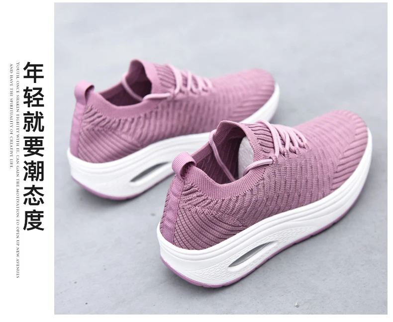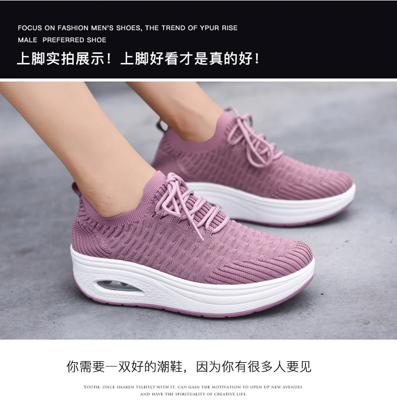 Fashion Breathable Mesh Women Shoes Wedges Heel Shoes Ladies Knitting Sock Sneakers Women Platform Casual Shoes