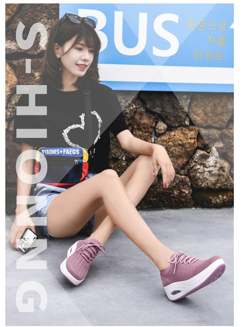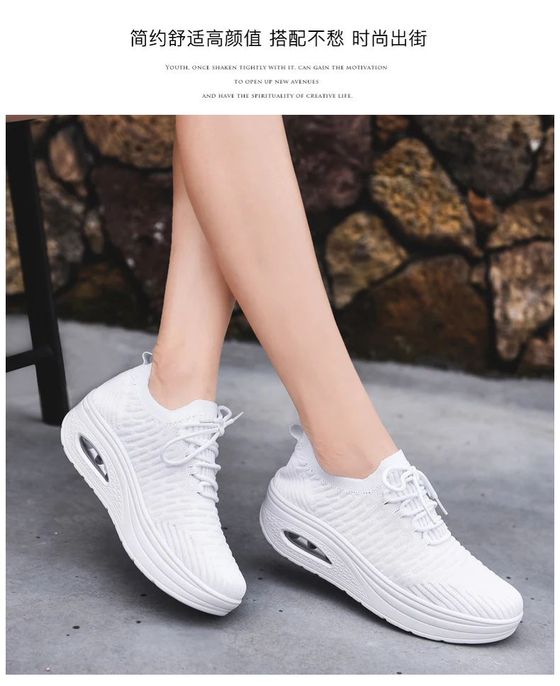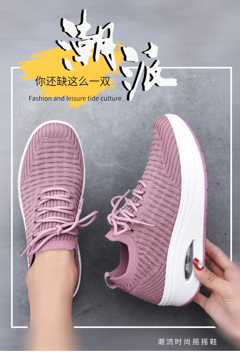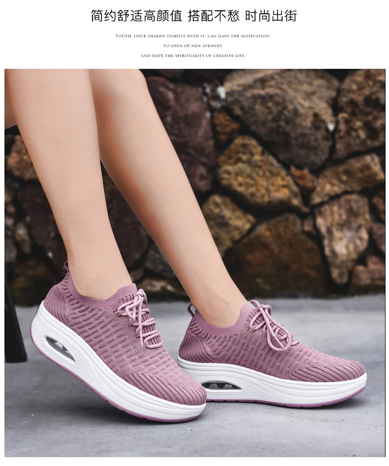 Fashion Breathable Mesh Women Shoes Wedges Heel Shoes Ladies Knitting Sock Sneakers Women Platform Casual Shoes