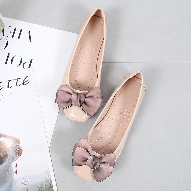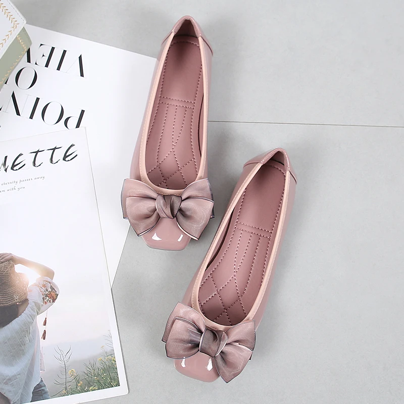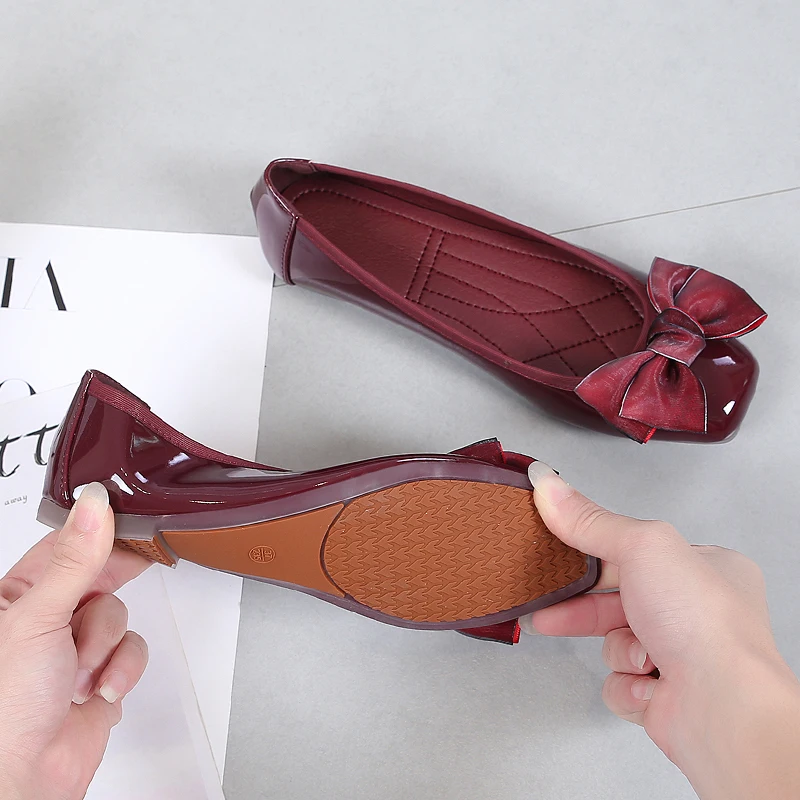 Fashion Pointed Toe Women Flats Shoes Bow Women Shoes Patent Leather Casual Single Summer Ballerina Shallow Mouth Shoes AC534