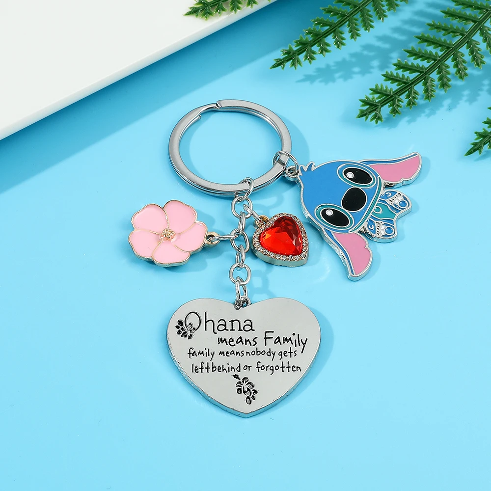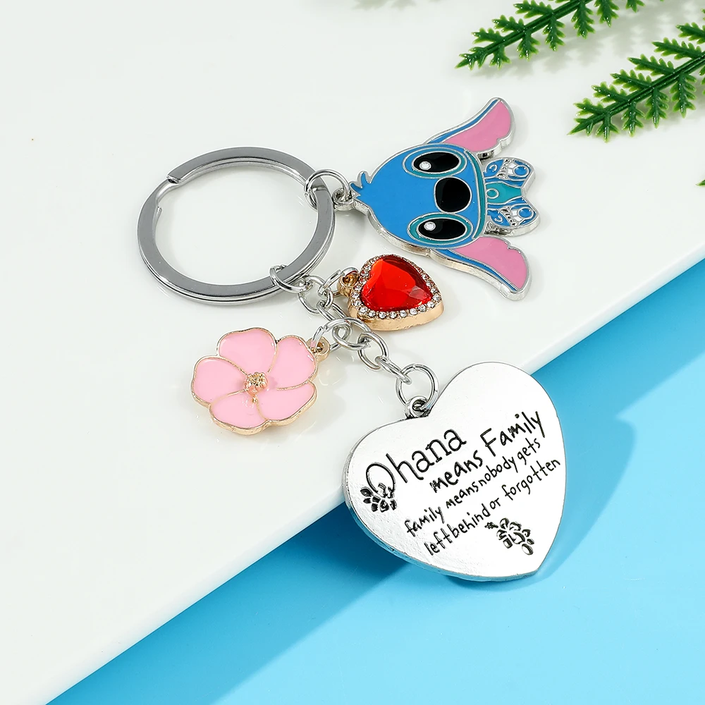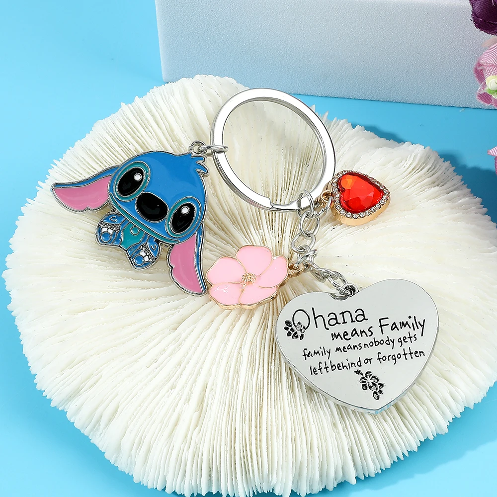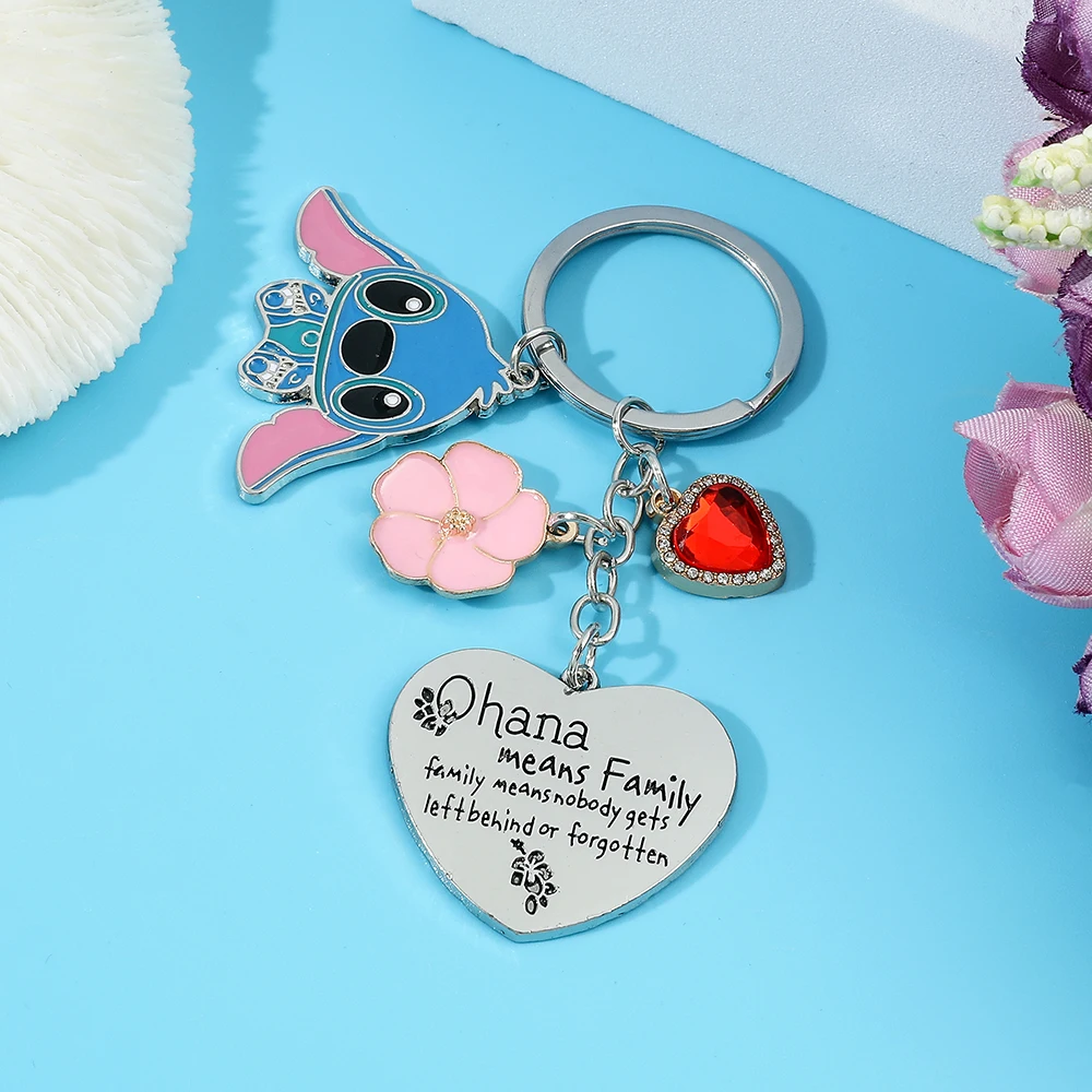 Kawaii Stitch Heart Shape Crystal Pendant Keychain Cartoon Anime Lilo & Stitch Keyring Fashion Women Backpack Ornament Toy Gift