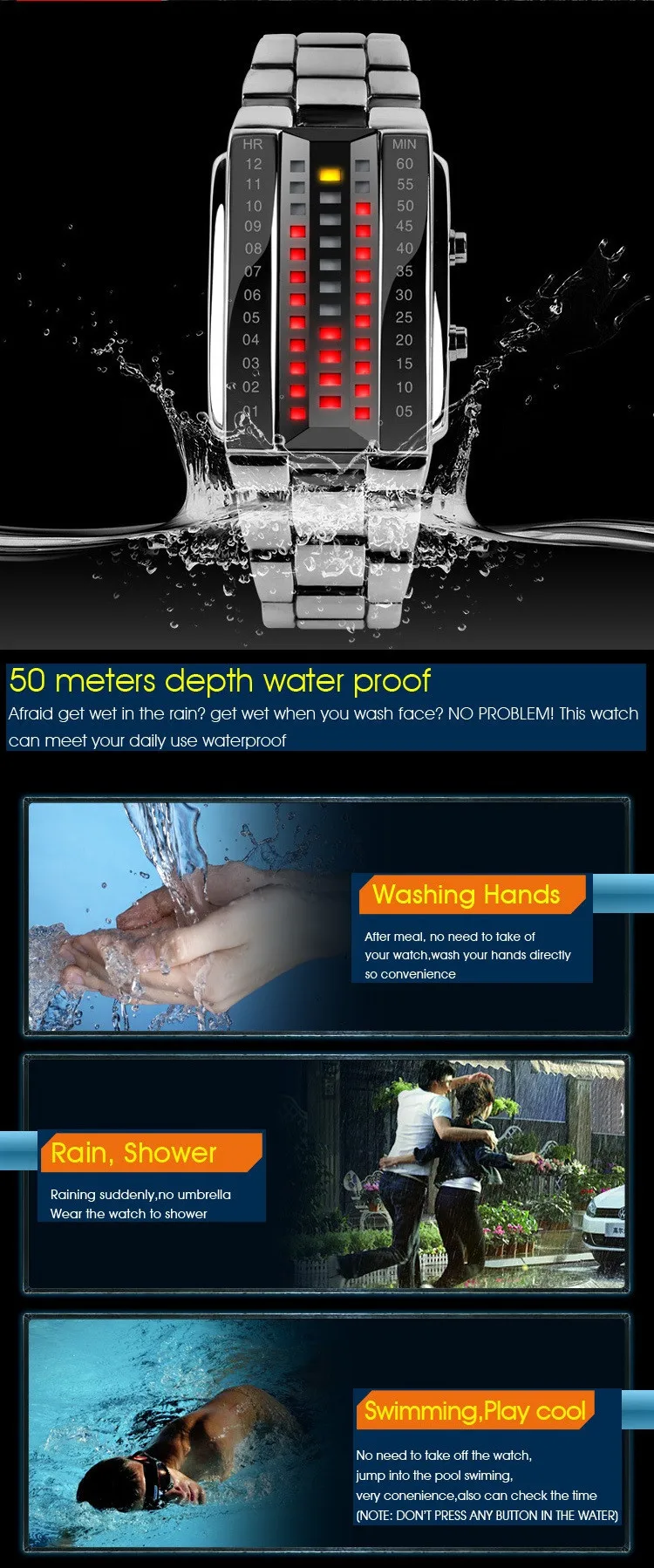 Feature: Stainless Steel Wristwatch Binary led Displayer Sports Watches